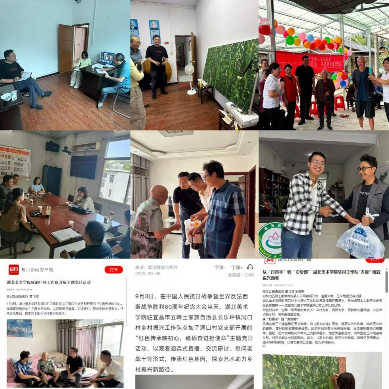 驻村工作队充分发挥学校专业优势,以艺术赋能乡村文化建设。一是打造美育实践阵地,乡村美术馆建设有序推进,通过邀请老党员参观建言、定期汇报建设进展等方式,持续完善艺术空间功能。二是推动艺术创作与乡村融合,马境老师创作的油画《葳蕤楚色》以独特的艺术语言展现乡村新貌,作品荣获"沾泥土、带露珠、冒热气"的高度评价,并成功入围第八届全国青年美术作品展览。三是创新美育实践路径,将艺术教育融入丰收节调研、敬老活动等乡村日常生活,通过富有仪式感的审美体验,潜移默化提升乡村文明水平。相关工作获得《湖北日报》等主流媒体累计8次专题报道,"带画笔的帮扶人"品牌形象广受认可,"艺术+乡村振兴"的融合效应持续增强,有效拓展了艺术赋能乡村振兴的广度和深度。